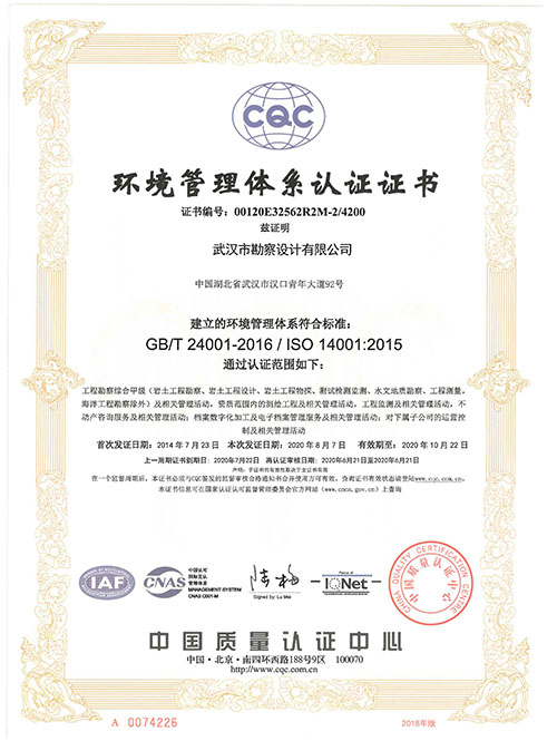 環(huán)境管理體系認證證書