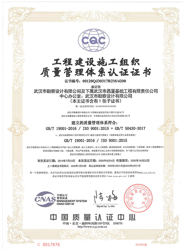 質(zhì)量管理體系認證證書