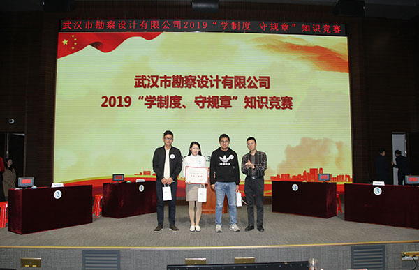 按照競(jìng)賽規(guī)則,比賽分預(yù)賽和決賽兩個(gè)階段進(jìn)行,比賽由個(gè)人必答題、小組必答題和搶答題三個(gè)環(huán)節(jié)組成,比賽題目?jī)?nèi)容涵蓋了公司企業(yè)文化、《績(jī)效目標(biāo)管理辦法》、《差旅費(fèi)管理辦法》、《合同管理辦法》、《員工崗位歸級(jí)管理暫行辦法》、《安全生產(chǎn)與文明施工管理規(guī)定》等公司核心管理制度的內(nèi)容。預(yù)賽階段,12支參賽隊(duì)伍以飽滿的熱情、昂揚(yáng)的斗志、團(tuán)結(jié)的作風(fēng)、拼搏的精神,為大家獻(xiàn)上了一場(chǎng)緊張激烈、精彩紛呈的知識(shí)競(jìng)賽,各隊(duì)比分也一度不相上下,經(jīng)過近一個(gè)小時(shí)的緊張角逐,巖土工程二公司、臨空分公司、設(shè)計(jì)中心3支代表隊(duì)分別以小組第一名的成績(jī)進(jìn)入決賽。預(yù)賽結(jié)束后的間隙休息時(shí)段,同時(shí)設(shè)置了觀眾互動(dòng)答題環(huán)節(jié),讓現(xiàn)場(chǎng)觀眾共同參與答題,賽場(chǎng)氣氛熱烈。決賽環(huán)節(jié)更是高潮迭起、扣人心弦,3支代表隊(duì)的選手配合默契、沉著冷靜、對(duì)答如流,在小組必答題環(huán)節(jié)也是穩(wěn)打穩(wěn)扎,不急不躁,各隊(duì)的比分差距較小。最終經(jīng)過兩輪比拼,設(shè)計(jì)中心代表隊(duì)以240分的高分榮獲團(tuán)體一等獎(jiǎng),臨空分公司代表隊(duì)榮獲團(tuán)體二等獎(jiǎng),巖土工程二公司代表隊(duì)榮獲團(tuán)體三等獎(jiǎng)。公司董事長(zhǎng)廖建生、總經(jīng)理施木俊、副總經(jīng)理安永強(qiáng)分別為獲獎(jiǎng)選手頒發(fā)了榮譽(yù)證書和獎(jiǎng)品。