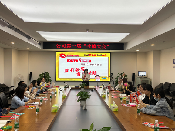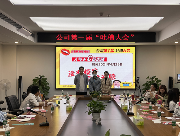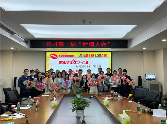 4月29日下午,公司第一屆吐槽大會(huì)在1717會(huì)議室精彩上演。來(lái)自公司各生產(chǎn)部門的20余名吐槽代表及職能部門代表齊聚一堂,在近3個(gè)小時(shí)的時(shí)間里,大家相互吐槽,用幽默風(fēng)趣的調(diào)侃、委婉有力的提問(wèn),共促公司發(fā)展。