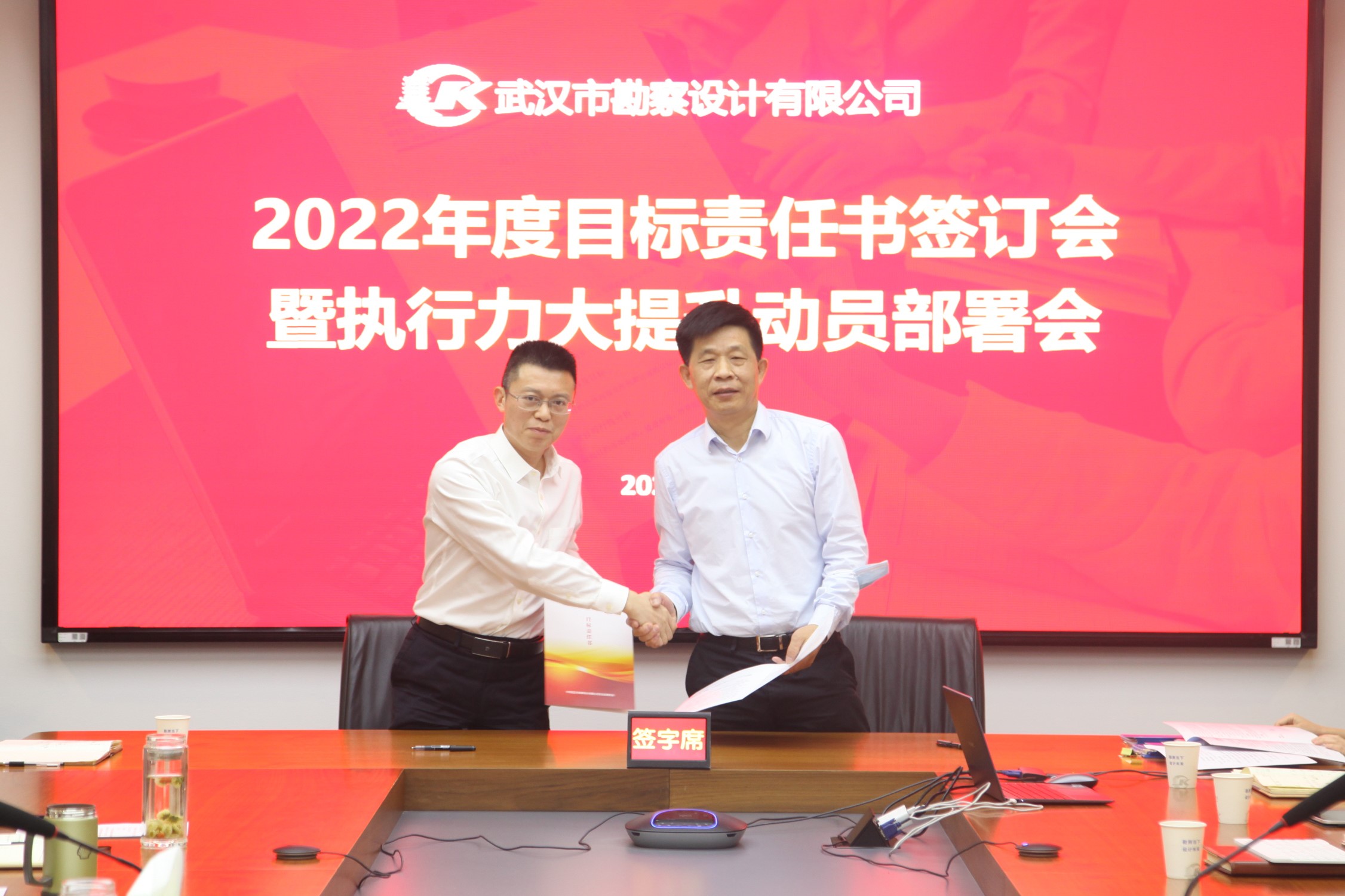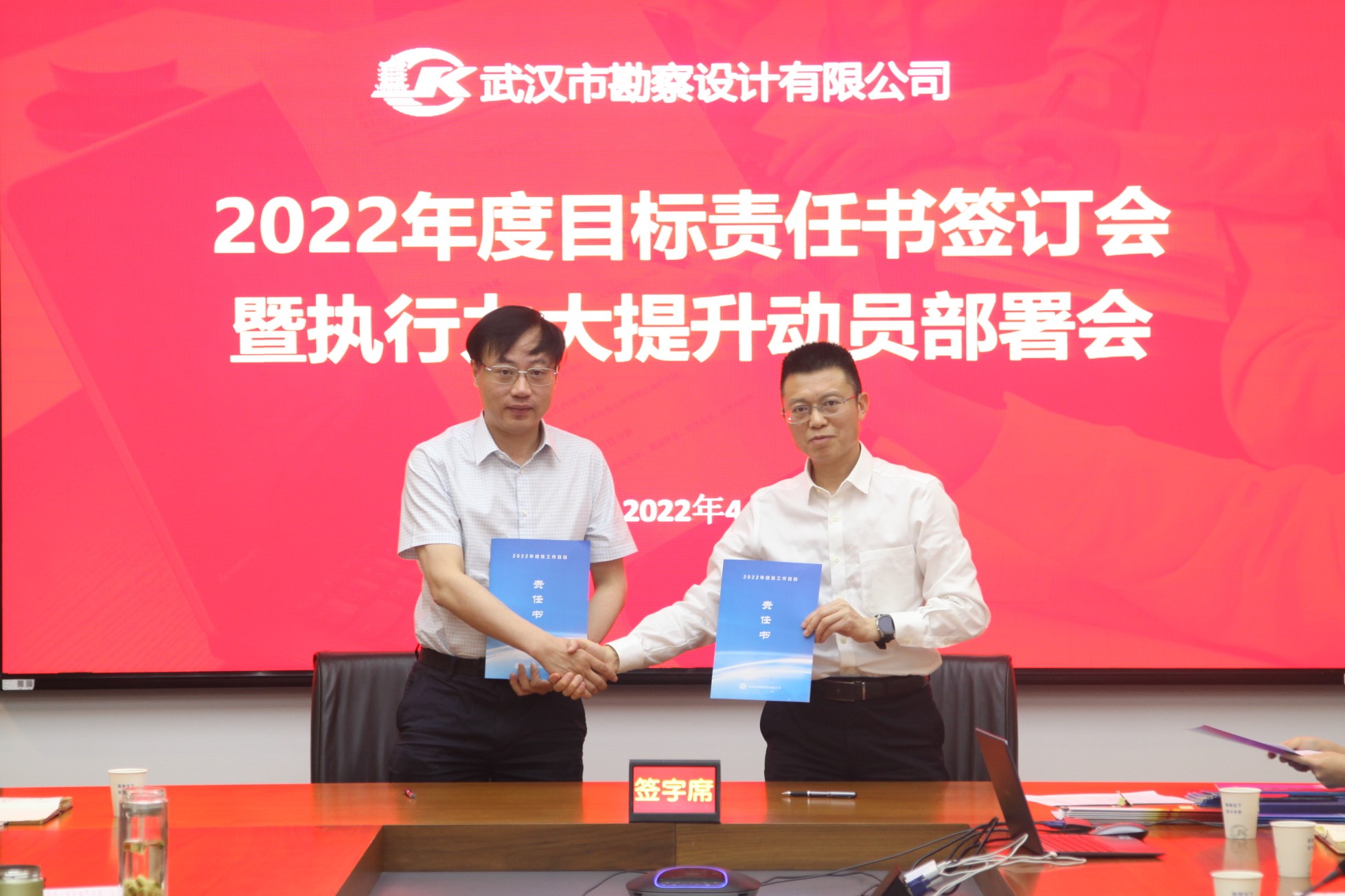 4月14日上午,公司在1717會議室組織召開“執(zhí)行力大提升”行動動員部署會暨2022年度目標(biāo)責(zé)任書簽訂會。會議圍繞武漢城建集團(tuán)“萬千百十一”、“執(zhí)行力大提升”、“揭榜掛帥”三大行動作出了宣貫部署,以高質(zhì)量完成年度各項(xiàng)任務(wù)為目標(biāo)導(dǎo)向,進(jìn)一步統(tǒng)一思想、分解任務(wù)、強(qiáng)化目標(biāo)、落實(shí)責(zé)任,為公司全年工作制定了科學(xué)的行動指南、打下了堅(jiān)實(shí)的思想基礎(chǔ)。