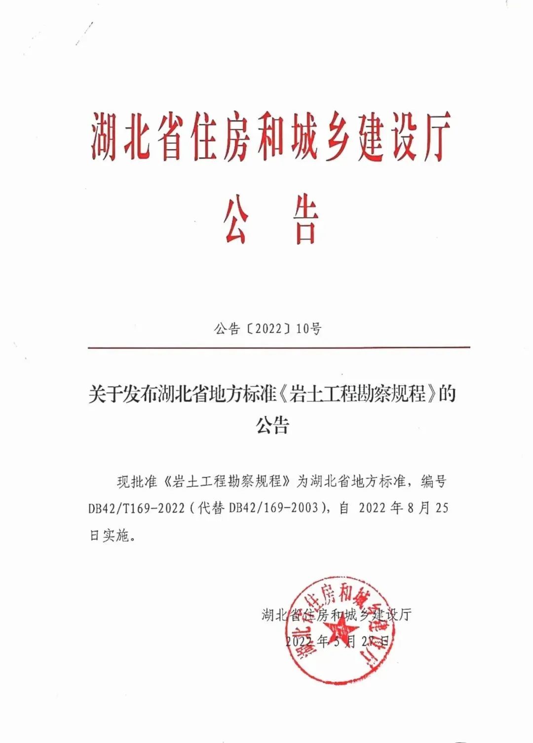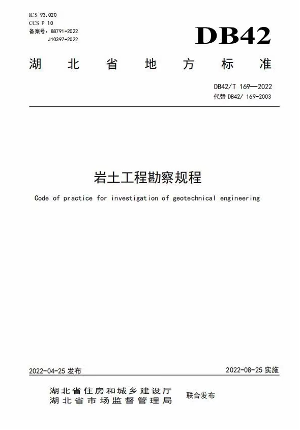 近期,湖北省住房和城鄉(xiāng)建設廳、湖北省市場監(jiān)督管理局聯(lián)合發(fā)布了《巖土工程勘察規(guī)程》DB42/T 169-2022(以下簡稱《規(guī)程》),并將于2022年8月25日起正式實施。