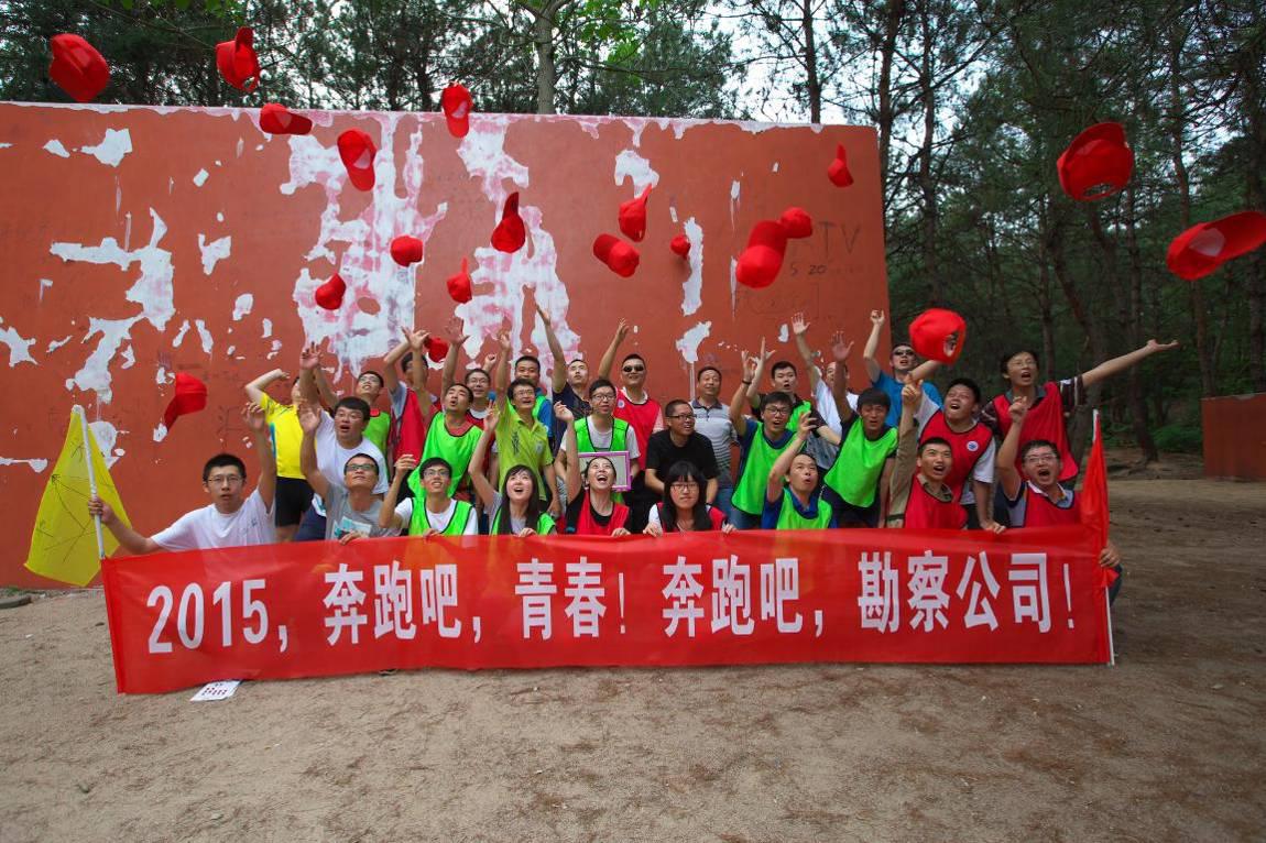 教練向大家講解了戶外拓展活動的要求和具體規(guī)則,并以輕松有趣的熱身方式對學(xué)員進行分組后,活動正式開始。所有隊員分成了“尖峰隊”和“王者隊”兩個團隊,分別制定了口號、隊歌,繪制了隊旗,并進行了團隊建設(shè)、團隊融合和團隊展示。在教練的指導(dǎo)下,隊員們攻堅克難,不斷挑戰(zhàn)自我、突破自我,先后完成了“雷區(qū)取水”、“孤島求生”、“羅馬戰(zhàn)車”、“指壓板”、“登山闖三關(guān)”、“挑戰(zhàn)150秒”等多個高難度的項目。活動中,隊員們個個熱情高漲,全力投入,口號、隊歌、掌聲、笑聲和歡呼聲此起彼伏。特別在最后的翻越“畢業(yè)墻”環(huán)節(jié),更是凸顯了勘察設(shè)計公司“勇往直前、團結(jié)一致”的拼搏精神。全體隊員齊心協(xié)力、心往一處想,勁往一處使,用時8分鐘成功翻越了4.2米的畢業(yè)墻。在拓展活動即將結(jié)束時,大家用汗水、淚水、喜悅和成功印證了一個團結(jié)奮進的隊伍、一個勇于面對困境的隊伍、一個內(nèi)心強大的隊伍一定能夠把握機會、戰(zhàn)勝困難、贏得成功。