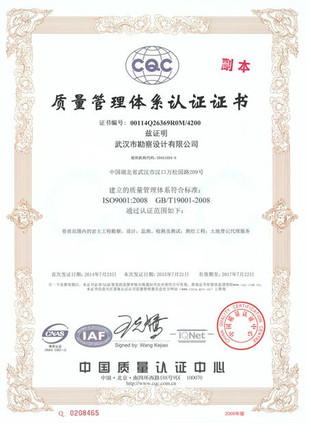 2015年6月3日~4日,中國質(zhì)量認(rèn)證中心對我公司(勘察公司和昌廈公司,下同)的兩個(gè)三標(biāo)一體化管理體系進(jìn)行了聯(lián)合監(jiān)督審核。本次監(jiān)督審核涉及到勘察公司三標(biāo)體系范圍測繪工程、土地登記代理增項(xiàng),昌廈公司三標(biāo)體系范圍工程勘察減項(xiàng),特別是勘察公司三標(biāo)體系的增項(xiàng),直接關(guān)系到公司相關(guān)業(yè)務(wù)的生產(chǎn)活動(dòng)。為了做好迎審準(zhǔn)備,技術(shù)質(zhì)量部(體系辦)組織召開多次會(huì)議布置工作,并對各部門,特別是涉及到增項(xiàng)的測繪工程公司的準(zhǔn)備工作進(jìn)行多次監(jiān)督檢查。在公司領(lǐng)導(dǎo)的悉心指導(dǎo)和各部門的大力支持下,我公司順利通過了中國質(zhì)量認(rèn)證中心的監(jiān)督審核,2015年7月29日取得了新頒發(fā)的勘察公司和昌廈公司的三標(biāo)體系證書,為各生產(chǎn)部門的生產(chǎn)經(jīng)營活動(dòng)提供了保障,為進(jìn)一步提升公司管理水平奠定了堅(jiān)實(shí)基礎(chǔ)。(技術(shù)質(zhì)量部)