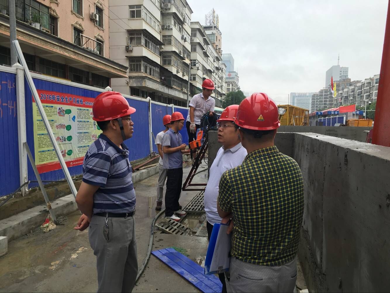 近期武漢地區(qū)連降暴雨,城區(qū)多處漬水嚴(yán)重,給我公司外業(yè)工地安全生產(chǎn)文明施工帶來極大不利影響,安全隱患陡增。公司領(lǐng)導(dǎo)高度重視,董事長廖建生親自部署,要求各生產(chǎn)部門對在建工地進(jìn)行仔細(xì)排查,消除安全隱患,并要求綜合部、安全生產(chǎn)部隨時(shí)待命作好后勤保障工作。7月5日上午,公司副總經(jīng)理、總工官善友親自帶隊(duì),率領(lǐng)安全生產(chǎn)部、技術(shù)質(zhì)量部前往江夏地鐵27號線北華街站基坑監(jiān)測工地、漢口火車站優(yōu)撫醫(yī)院基坑工地、長豐大道勘察工地檢查工作。每到一處,官總都要詳細(xì)詢問工程進(jìn)展情況、項(xiàng)目存在的問題,安全生產(chǎn)文明施工措施落實(shí)情況,為現(xiàn)場項(xiàng)目組出謀現(xiàn)策。官總對各在建工地安全文明施工及規(guī)范管理予以了肯定,同時(shí)督促在建項(xiàng)目負(fù)責(zé)人要時(shí)刻不放松地抓好工程質(zhì)量與安全管理,認(rèn)真落實(shí)安全生產(chǎn)責(zé)任制,面對惡劣天氣要認(rèn)真貫徹值班制度,加強(qiáng)安全巡查,及時(shí)發(fā)現(xiàn)和消除安全隱患,同時(shí)要求各工地項(xiàng)目負(fù)責(zé)人切實(shí)做好施工安全防護(hù)及施工人員安全教育培訓(xùn)工作,提高安全意識,確保安全生產(chǎn)“零事故”。(安全生產(chǎn)部)