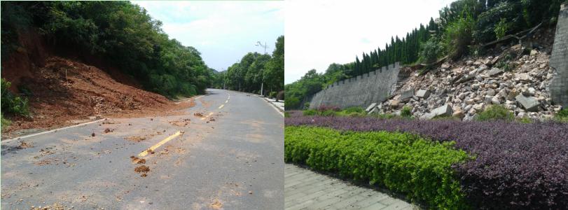 7月7日,受連日降雨影響,東湖新技術(shù)開發(fā)區(qū)頂冠峰山體因雨水沖刷浸泡,穩(wěn)定性降低,誘發(fā)土體滑坡。受東湖新技術(shù)開發(fā)區(qū)國土資源和規(guī)劃局的委托,巖土一公司副經(jīng)理彭華中帶領(lǐng)技術(shù)團(tuán)隊(duì)第一時(shí)間趕到滑坡現(xiàn)場(chǎng),冒著坡體進(jìn)一步垮塌的危險(xiǎn)爬上山頂,察看滑坡體后緣,了解滑坡性質(zhì)。對(duì)滑坡原因進(jìn)行了深入分析,由于頂冠峰南側(cè)表層以坡殘積土為主、坡率大,大量降雨滲入土體中,土體軟化,降低了巖體抗剪切能力,導(dǎo)致滑坡發(fā)生。技術(shù)團(tuán)隊(duì)當(dāng)日編制了該滑坡的應(yīng)急調(diào)查報(bào)告并呈報(bào)至區(qū)國土與規(guī)劃分局,為隨后的地質(zhì)災(zāi)害應(yīng)急避險(xiǎn)及治理提供了可靠的依據(jù)。在現(xiàn)場(chǎng)勘測(cè)和技術(shù)分析后,公司技術(shù)人員又不辭辛苦,挨家挨戶地發(fā)放地災(zāi)救治、避險(xiǎn)應(yīng)急宣傳資料,講解地災(zāi)防治知識(shí)。妥善安頓隱患點(diǎn)周邊村民后,又馬不停蹄的投入到隱患排查和治理措施研究中。