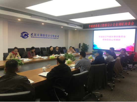 為全面了解武漢市勘察設(shè)計(jì)企業(yè)經(jīng)營狀況,切實(shí)掌握企業(yè)運(yùn)行情況,更好的為企業(yè)發(fā)展服務(wù),3月16日下午,市城建委林琨副主任、設(shè)計(jì)處徐海清處長、設(shè)計(jì)之都發(fā)展中心(審查辦)胡華瑩副主任、海管辦劉婕科長、節(jié)能處明珊科長赴我司進(jìn)行了考察調(diào)研。市測繪院肖建華院長,公司廖建生董事長、施木俊總經(jīng)理及其他高管層、職能部門負(fù)責(zé)人參加了座談。