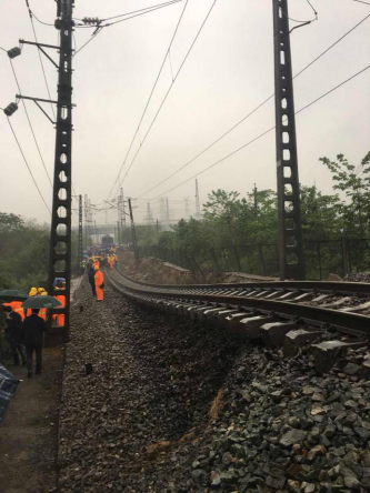 2018年4月12日凌晨,京廣普速鐵路1218KM+900M至1219KM+100M處路基垮塌。市國(guó)土資源規(guī)劃局領(lǐng)導(dǎo)接到應(yīng)急辦通知后,立即趕赴現(xiàn)場(chǎng)開展應(yīng)急處置工作,并將信息發(fā)布至“局地質(zhì)災(zāi)害隱患點(diǎn)工作群”內(nèi)。按照公司領(lǐng)導(dǎo)指示,地質(zhì)環(huán)境中心迅速行動(dòng),積極聯(lián)系市局領(lǐng)導(dǎo)確定事故位置,整理相關(guān)地質(zhì)資料,攜帶專業(yè)設(shè)備第一時(shí)間趕赴現(xiàn)場(chǎng),配合開展事故應(yīng)急調(diào)查工作。