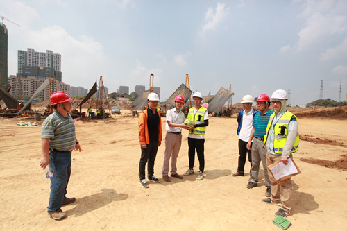 7月24日,公司董事長(zhǎng)廖建生、副總經(jīng)理安永強(qiáng)、副總經(jīng)理兼總工程師官善友、副總經(jīng)理蔣濤率領(lǐng)綜合部、技術(shù)質(zhì)量安全部(體系辦)、東湖分公司、新區(qū)分公司、基礎(chǔ)工程公司等部門(mén)相關(guān)負(fù)責(zé)人親赴一線,依次巡察了沌口村還建樓工程勘察項(xiàng)目、燎原村K8地塊超前鉆工程勘察項(xiàng)目和星河九州K2地塊基坑施工現(xiàn)場(chǎng),并送去了防暑降溫物品。每到一處,廖董都詳細(xì)詢問(wèn)工程進(jìn)展、人員配置及作業(yè)時(shí)間安排等情況,強(qiáng)調(diào)要切實(shí)采取防暑措施,合理安排作業(yè)時(shí)間,確保人員安全。廖董鼓勵(lì)年輕同志要抓住城市建設(shè)大發(fā)展的時(shí)代機(jī)遇,踏實(shí)工作、刻苦研究、勇于創(chuàng)新,爭(zhēng)取更大的進(jìn)步,同時(shí)強(qiáng)調(diào)在高溫期間,項(xiàng)目巡察慰問(wèn)工作要常態(tài)化,確保安全生產(chǎn)“零事故”。